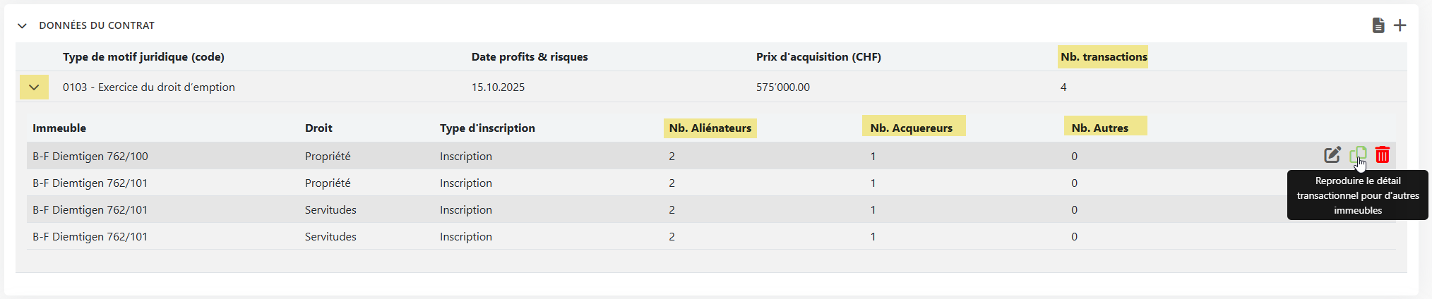 Affichage du nombre d’aliénateurs, d’acquéreurs et d’autres parties